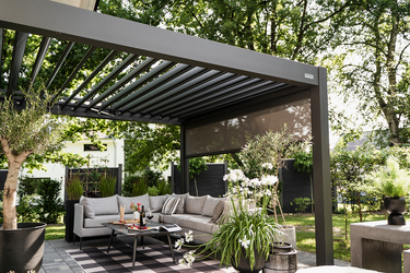 Le nostre pergole sono progettate per essere usate in tutte le stagioni e sono testate per resistere a vento fino a 120 km/h e carichi di neve fino a 150 kg/m².