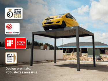 Le nostre pergole sono progettate per essere usate in tutte le stagioni e sono testate per resistere a vento fino a 120 km/h e carichi di neve fino a 150 kg/m².