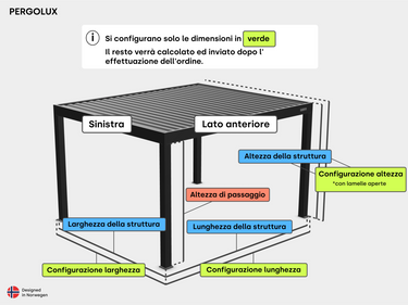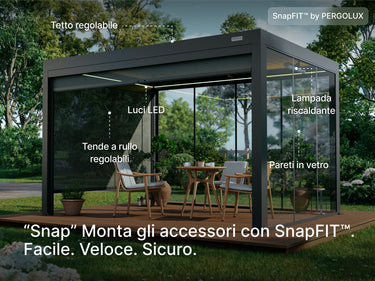 - Parte del sistema PERGOLUX con diversi accessori disponibili