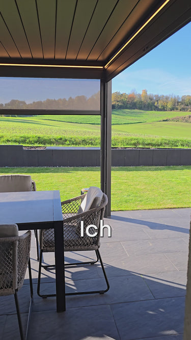 Controlla il tuo comfort grazie a un tetto elettrico e illuminazione integrata nella grondaia—il sole quando lo desideri, l'ombra quando ne hai bisogno. Gestisci tutto facilmente dal tuo smartphone tramite Bluetooth, integrazione con SMART HOME o il nostro nuovo telecomando resistente all’acqua.